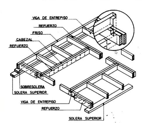 Veamos brevemente algunos de los principales elementos de los bastidores que constituyen los entramados horizontales del sistema woodframe: